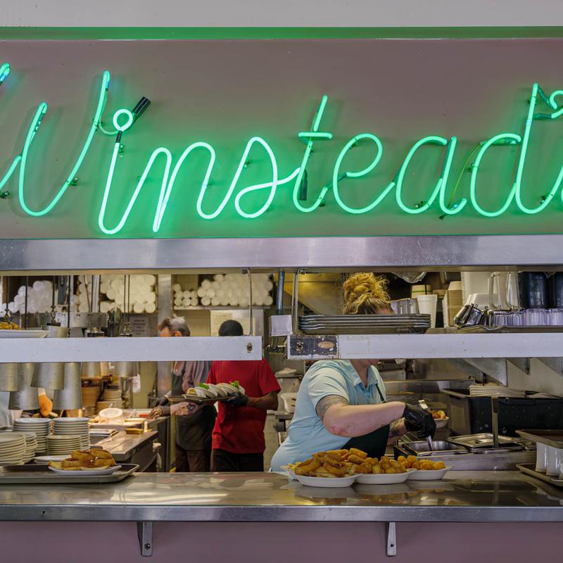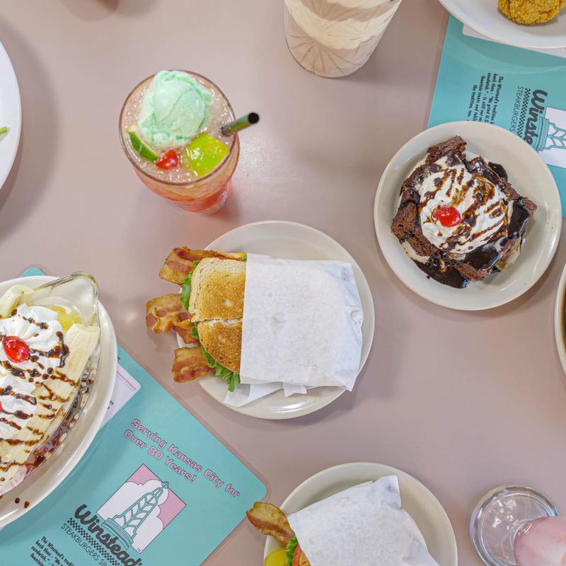 We always go to Winstead's when we are in Kansas City! The food is great! Good burgers, fries, rings and shakes! Just a short walk from the Plaza. Love the vintage vibe with turquoise booths and green and pink neon.